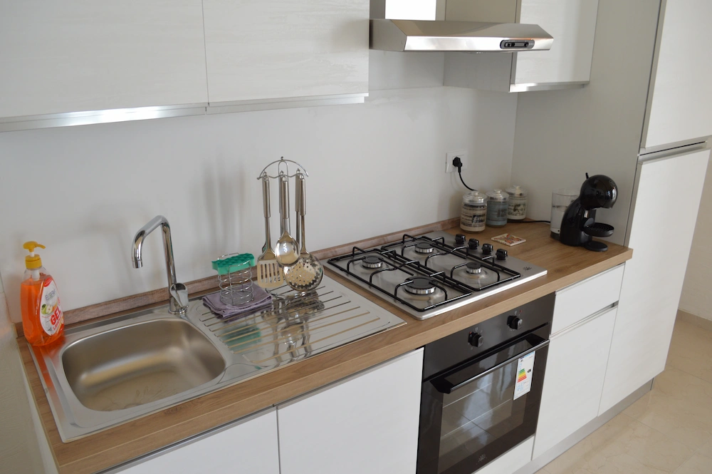 La cucina attrezzata 🍽️ ti permette di preparare i tuoi pasti in tutta comodità, grazie alla presenza di utensili, stoviglie e tutto ciò che serve per sentirti a casa.