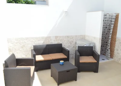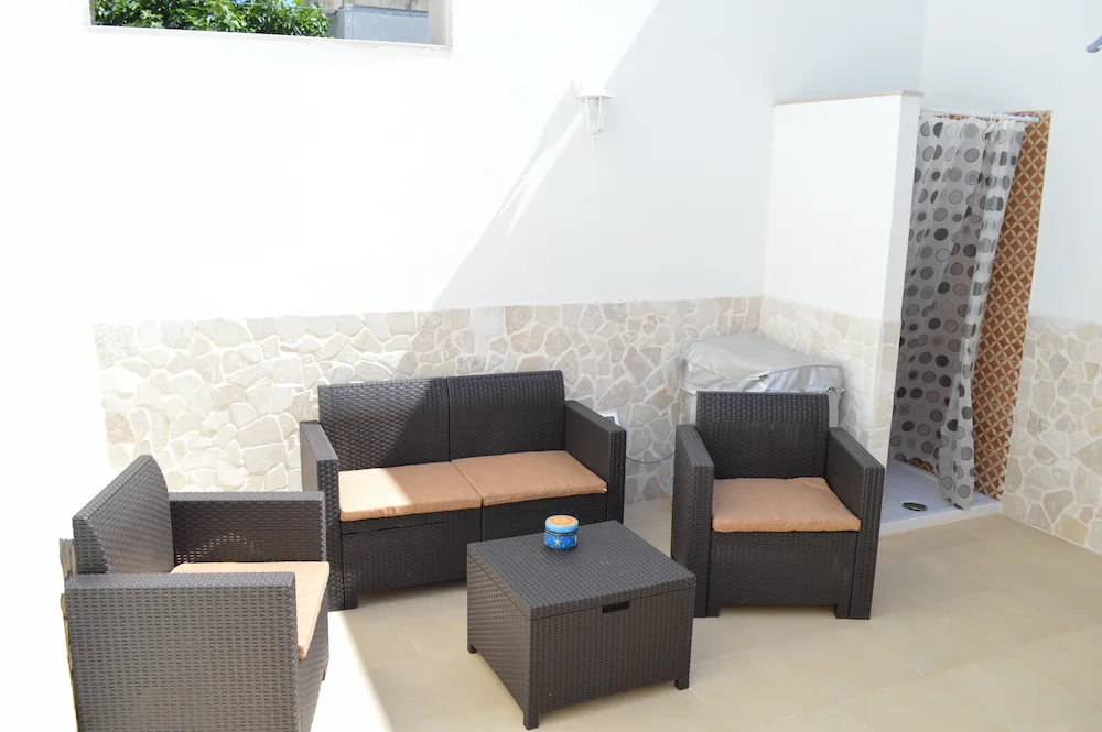 Ogni appartamento dispone anche di uno spazio esterno privato, ideale per rilassarsi all’aperto, e di una doccia esterna 🚿, perfetta per rinfrescarsi al rientro dal mare o per godersi qualche momento di relax in totale privacy